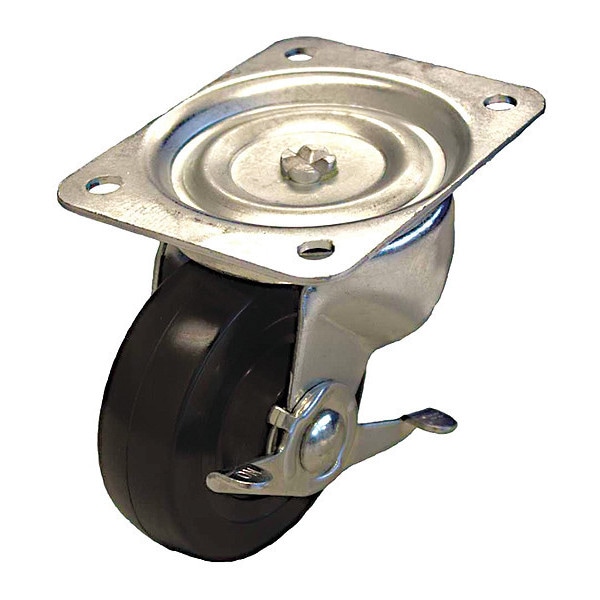 Swivel, Plate Caster, Load Rating 250 lb, Swivel Lock Type No Lock Included, Wheel Dia. 4 in, Wheel Width 1 5/16 in, Wheel/Tread Material Rubber, Wheel Core Material Rubber, Non-Marking No, Number of Wheels 1, Caster Brake Type Side Brake, Tread Shape Standard