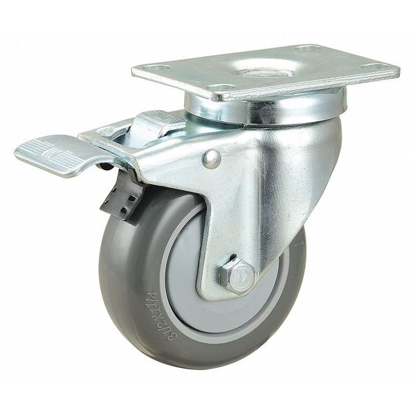 Swivel, Plate Caster, Load Rating 275 lb, Swivel Lock Type Total Lock, Wheel Dia. 3 1/2 in, Wheel Width 1 1/4 in, Wheel/Tread Material Polyurethane, Wheel Core Material Polyolefin, Non-Marking Yes, Number of Wheels 1, Caster Brake Type Total Lock, Tread Shape Standard