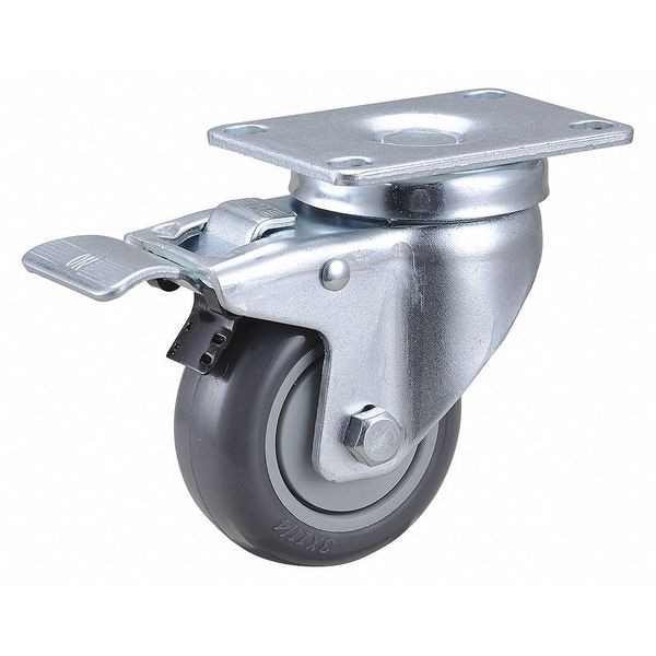 Swivel, Plate Caster, Load Rating 275 lb, Swivel Lock Type Total Lock, Wheel Dia. 3 in, Wheel Width 1 1/4 in, Wheel/Tread Material Polyurethane, Wheel Core Material Polyolefin, Non-Marking Yes, Number of Wheels 1, Caster Brake Type Total Lock, Tread Shape Standard