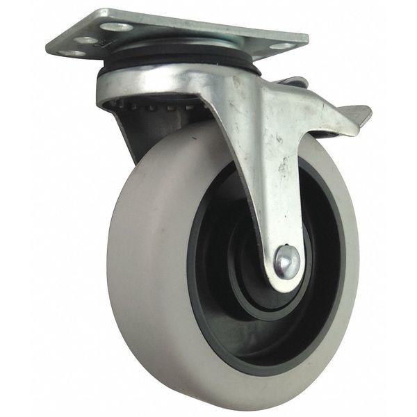 Swivel, Plate Caster, Load Rating 400 lb, Swivel Lock Type Total Lock, Wheel Dia. 5 in, Wheel Width 1 1/2 in, Wheel/Tread Material Rubber, Wheel Core Material Polyolefin, Non-Marking Yes, Number of Wheels 1, Caster Brake Type Total Lock, Tread Shape Standard