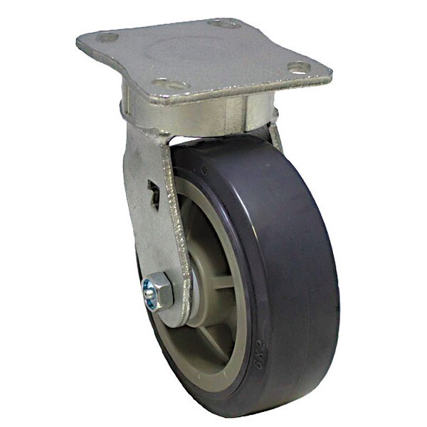 Plate Caster, 600 lb. Load, Gray Wheel