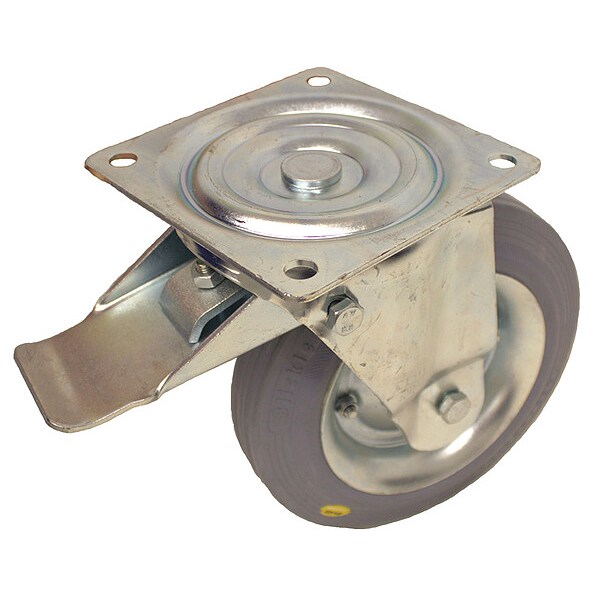 Swivel, Plate Caster, Load Rating 770 lb, Swivel Lock Type No Lock Included, Wheel Dia. 10 in, Wheel Width 2 3/8 in, Wheel/Tread Material Rubber, Wheel Core Material Steel, Non-Marking Yes, Number of Wheels 1, Caster Brake Type Total Lock, Tread Shape Standard