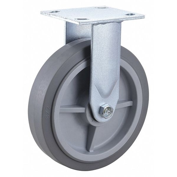 Rigid, Plate Caster, Load Rating 600 lb, Swivel Lock Type No Lock Included, Wheel Dia. 8 in, Wheel Width 2 in, Wheel/Tread Material Rubber, Wheel Core Material Polyolefin, Non-Marking Yes, Number of Wheels 1, Caster Brake Type No Brake, Tread Shape Standard