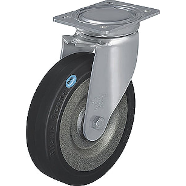 Swivel, Plate Caster, Load Rating 990 lb, Swivel Lock Type No Lock Included, Wheel Dia. 6 5/16 in, Wheel Width 2 in, Wheel/Tread Material Rubber, Wheel Core Material Steel, Non-Marking Yes, Number of Wheels 1, Caster Brake Type No Brake, Tread Shape Standard
