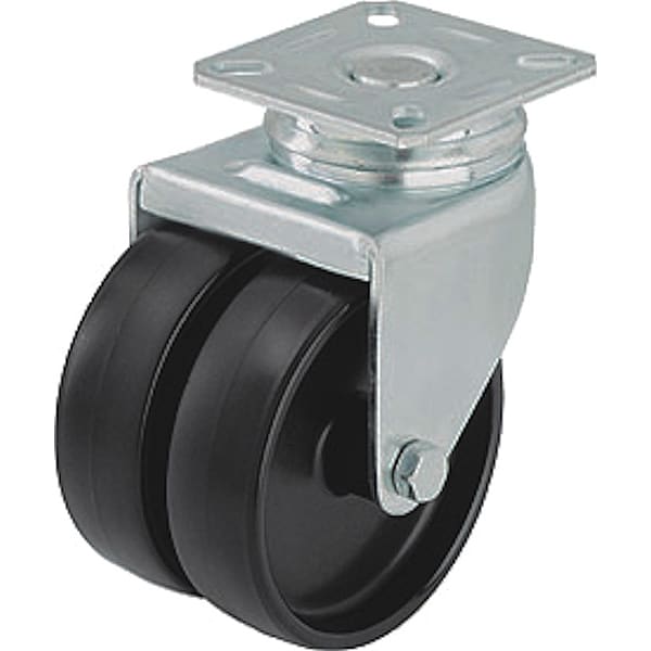 Swivel, Plate Caster, Load Rating 175 lb, Swivel Lock Type No Lock Included, Wheel Dia. 2 in, Wheel Width 11/16 in, Wheel Core Material Nylon, Non-Marking Yes, Number of Wheels 2, Caster Brake Type No Brake, Tread Shape Standard