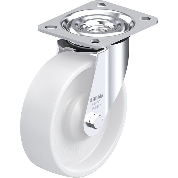 Swivel, Plate Caster, Wheel Dia. 127 mm, Wheel Width 40 mm, Non-Marking Yes, Number of Wheels 1, Caster Brake Type No Brake, Tread Shape Standard