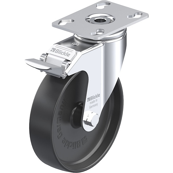 Swivel, Plate Caster, Wheel Dia. 127 mm, Wheel Width 32 mm, Non-Marking Yes, Number of Wheels 1, Caster Brake Type Total Lock, Tread Shape Standard