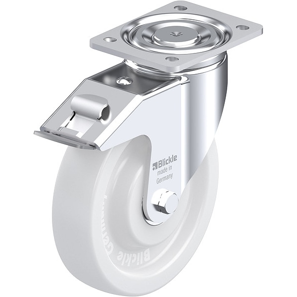 Swivel, Plate Caster, Wheel Dia. 102 mm, Wheel Width 51 mm, Non-Marking Yes, Number of Wheels 1, Caster Brake Type Total Lock, Tread Shape Standard
