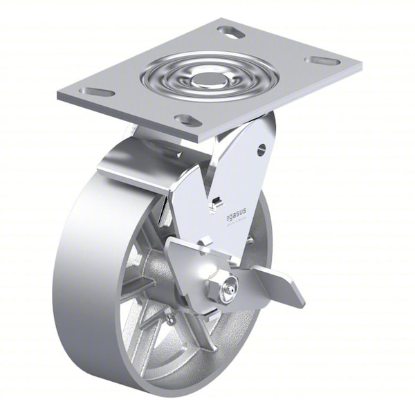 Swivel, Plate Caster, Wheel Dia. 5 in, Wheel Width 2 in, Wheel/Tread Material Iron, Non-Marking Yes, Number of Wheels 1, Caster Brake Type Side Brake, Tread Shape Standard