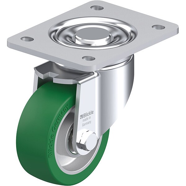 Plate Caster, Swivel, Polyurethane, 5 1/2"H