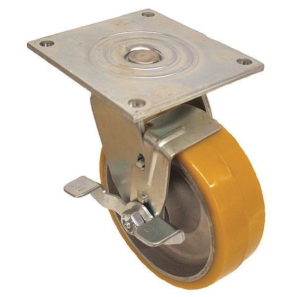 Swivel, Plate Caster, Load Rating 1250 lb, Swivel Lock Type No Lock Included, Wheel Dia. 8 in, Wheel Width 2 in, Wheel/Tread Material Polyurethane, Wheel Core Material Aluminum, Non-Marking Yes, Number of Wheels 1, Caster Brake Type Side Brake, Tread Shape Standard
