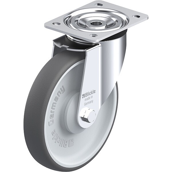 Plate Caster, Swivel, Polyurethane, 9 1/4"H
