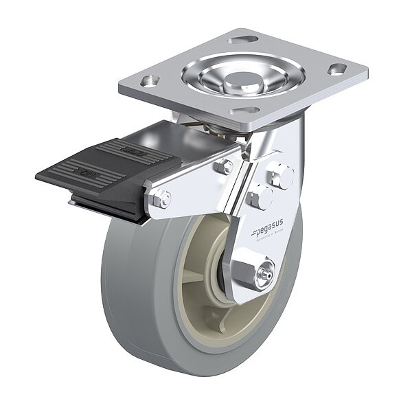 Plate Caster, Swivel, Rubber, 5 5/8"H