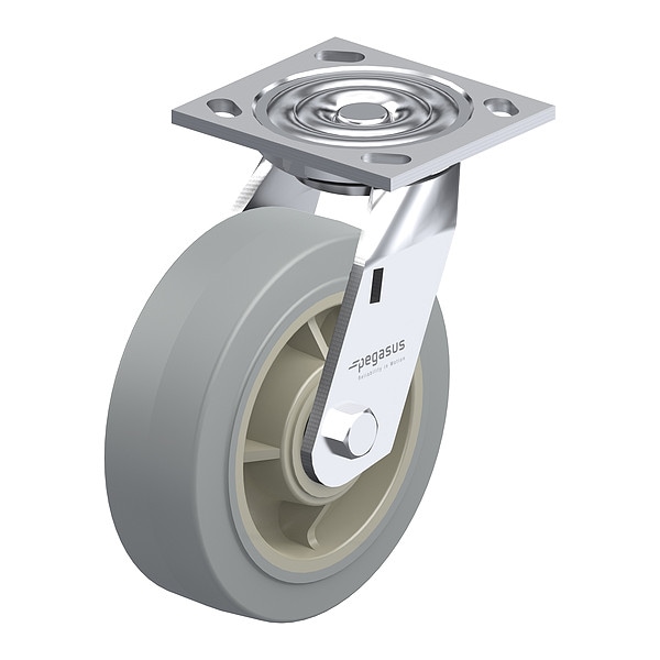 Plate Caster, Swivel, Rubber, 5 5/8"H