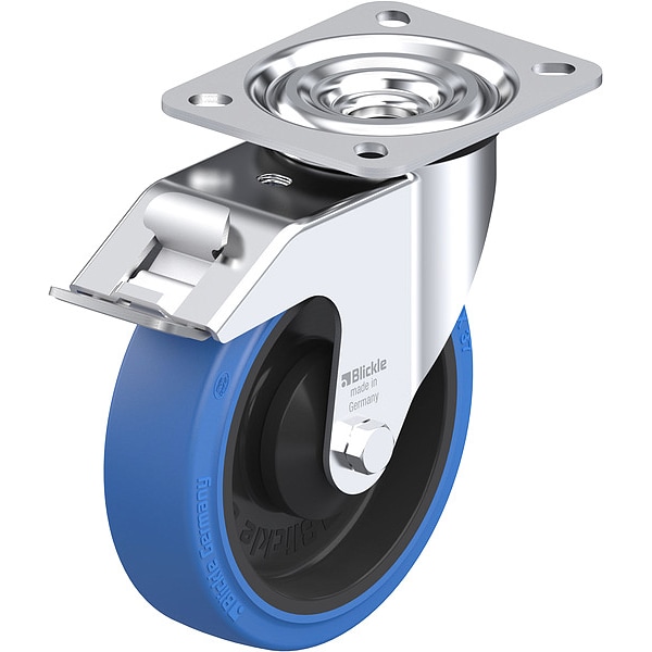 Swivel, Plate Caster, Wheel Dia. 127 mm, Wheel Width 37 mm, Wheel/Tread Material Rubber, Wheel Core Material Nylon, Non-Marking Yes, Number of Wheels 1, Caster Brake Type Total Lock, Tread Shape Standard