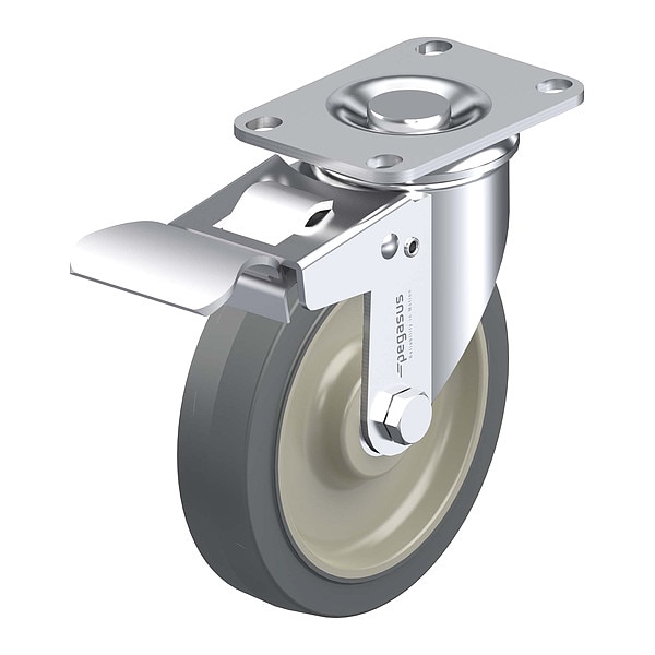 Swivel, Plate Caster, Wheel Dia. 5 in, Wheel Width 1 1/4 in, Wheel/Tread Material Polyurethane, Non-Marking Yes, Number of Wheels 1, Caster Brake Type Total Lock, Tread Shape Standard