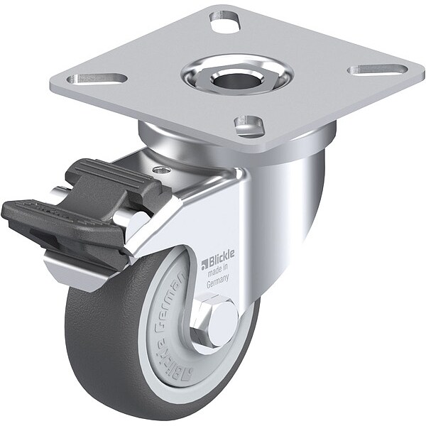 Swivel, Plate Caster, Wheel Dia. 51 mm, Wheel Width 19 mm, Wheel/Tread Material Polyurethane, Wheel Core Material Nylon, Non-Marking Yes, Number of Wheels 1, Caster Brake Type Total Lock, Tread Shape Standard