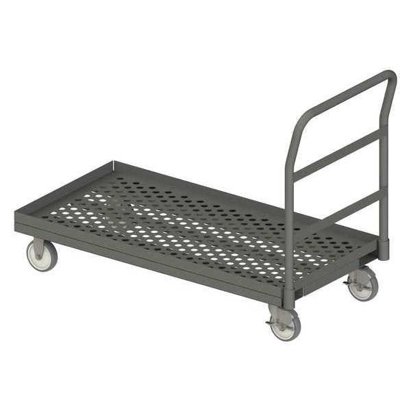 Platform Truck, Load Capacity 1,400 lb, Overall Height 36 3/8 in, Overall Length 39 5/8 in, Overall Width 24 3/8 in, Deck Construction Perforated, Deck Material Steel, Deck Finish/Coating Powder Coated, Deck Gauge 12 ga, Deck Height 9 1/4 in, Deck Length 36 in, Deck Width 24 in, Deck Surface Smooth, Frame Material Steel, Frame Finish/Coating Powder Coated, Handle Type Removable Raised, Lip Style Combination, Lip Height 1 5/8 in, Side Panel Type No Side Panels, Number of Platforms 1, Color Gray