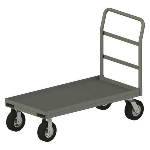 Platform Truck, Load Capacity 1,200 lb, Overall Height 40 in, Overall Length 39 5/8 in, Overall Width 24 3/8 in, Deck Construction Solid, Deck Material Steel, Deck Finish/Coating Powder Coated, Deck Gauge 12 ga, Deck Height 12 7/8 in, Deck Length 36 in, Deck Width 24 in, Deck Surface Smooth, Frame Material Steel, Frame Finish/Coating Powder Coated, Handle Type Removable Raised, Lip Style Flush, Lip Height Not Applicable, Side Panel Type No Side Panels, Number of Platforms 1, Color Gray