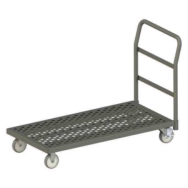 Flow-Through Steel-Deck Platform Truck, Load Capacity 1,400 lb, Overall Height 34 7/8 in, Overall Length 39 5/8 in, Overall Width 24 3/8 in, Deck Construction Perforated, Deck Material Steel, Deck Finish/Coating Powder Coated, Deck Gauge 12 ga, Deck Height 7 3/4 in, Deck Length 36 in, Deck Width 24 in, Deck Surface Smooth, Frame Material Steel, Frame Finish/Coating Powder Coated, Handle Type Removable Raised, Lip Style Flush, Side Panel Type No Side Panels, Number of Platforms 1, Color Gray