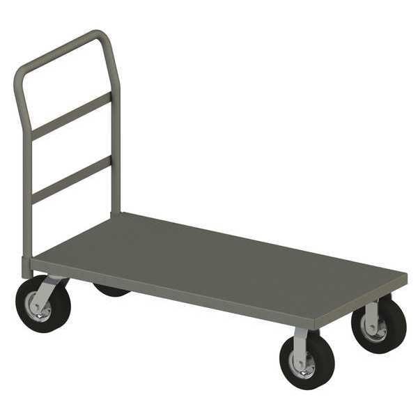 Platform Truck, Load Capacity 2,400 lb, Overall Height 38 1/2 in, Overall Length 51 5/8 in, Overall Width 18 3/8 in, Deck Construction Solid, Deck Material Steel, Deck Finish/Coating Powder Coated, Deck Gauge 12 ga, Deck Height 11 3/8 in, Deck Length 48 in, Deck Width 18 in, Deck Surface Smooth, Frame Material Steel, Frame Finish/Coating Powder Coated, Handle Type Removable Raised, Lip Style Flush, Lip Height Not Applicable, Side Panel Type No Side Panels, Number of Platforms 1, Color Gray