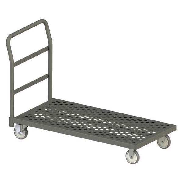 Platform Truck, Load Capacity 1,400 lb, Overall Height 34 7/8 in, Overall Length 51 5/8 in, Overall Width 24 3/8 in, Deck Construction Perforated, Deck Material Steel, Deck Finish/Coating Powder Coated, Deck Gauge 12 ga, Deck Height 7 3/4 in, Deck Length 48 in, Deck Width 24 in, Deck Surface Smooth, Frame Material Steel, Frame Finish/Coating Powder Coated, Handle Type Removable Raised, Lip Style Flush, Side Panel Type No Side Panels, Number of Platforms 1, Color Gray