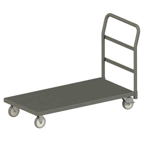 Platform Truck, Load Capacity 1,400 lb, Overall Height 34 7/8 in, Overall Length 51 5/8 in, Overall Width 18 3/8 in, Deck Construction Solid, Deck Material Steel, Deck Finish/Coating Powder Coated, Deck Gauge 12 ga, Deck Height 7 3/4 in, Deck Length 48 in, Deck Width 18 in, Deck Surface Smooth, Frame Material Steel, Frame Finish/Coating Powder Coated, Handle Type Removable Raised, Lip Style Flush, Lip Height Not Applicable, Side Panel Type No Side Panels, Number of Platforms 1, Color Gray