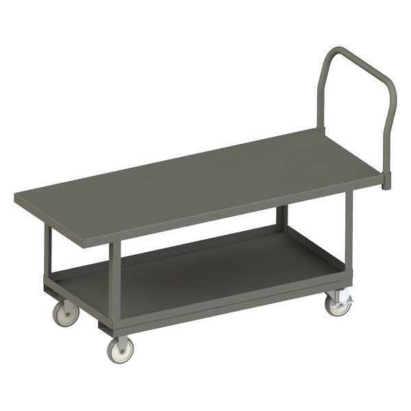Platform Truck, Load Capacity 1,400 lb, Overall Height 40 7/8 in, Overall Length 51 5/8 in, Overall Width 30 3/8 in, Deck Construction Solid, Deck Material Steel, Deck Finish/Coating Powder Coated, Deck Gauge 12 ga, Deck Height 27 in, Deck Length 48 in, Deck Width 30 in, Deck Surface Smooth, Frame Material Steel, Frame Finish/Coating Powder Coated, Handle Type Removable Raised, Lip Style Flush, Lip Height Not Applicable, Side Panel Type No Side Panels, Number of Platforms 2, Color Gray