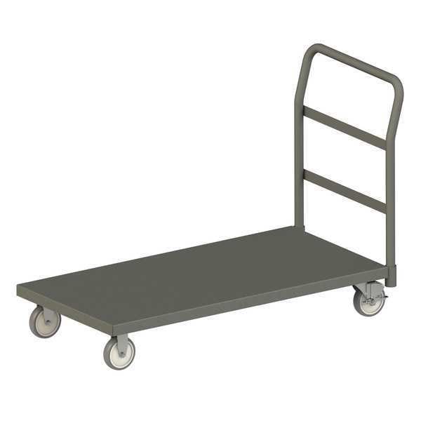 Platform Truck, Load Capacity 1,400 lb, Overall Height 34 7/8 in, Overall Length 75 5/8 in, Overall Width 24 3/8 in, Deck Construction Solid, Deck Material Steel, Deck Finish/Coating Powder Coated, Deck Gauge 12 ga, Deck Height 7 3/4 in, Deck Length 72 in, Deck Width 24 in, Deck Surface Smooth, Frame Material Steel, Frame Finish/Coating Powder Coated, Handle Type Removable Raised, Lip Style Flush, Lip Height Not Applicable, Side Panel Type No Side Panels, Number of Platforms 1, Color Gray