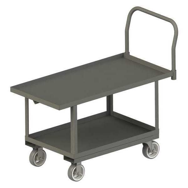 Work-Height Steel-Deck Platform Truck, Load Capacity 2,000 lb, Overall Height 43 3/4 in, Overall Length 51 5/8 in, Overall Width 24 3/8 in, Deck Construction Solid, Deck Material Steel, Deck Finish/Coating Powder Coated, Deck Gauge 12 ga, Deck Height 26 in, Deck Length 36 in, 48 in, Deck Width 24 in, Deck Surface Smooth, Frame Material Steel, Frame Finish/Coating Powder Coated, Handle Type Removable Raised, Lip Style 4-Sided Lipped, Side Panel Type No Side Panels, Number of Platforms 2