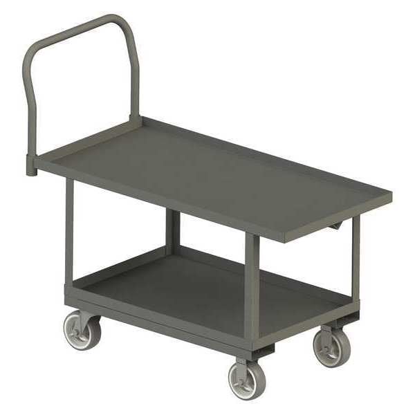 Work-Height Steel-Deck Platform Truck, Load Capacity 2,000 lb, Overall Height 43 3/4 in, Overall Length 63 5/8 in, Overall Width 24 3/8 in, Deck Construction Solid, Deck Material Steel, Deck Finish/Coating Powder Coated, Deck Gauge 12 ga, Deck Height 26 in, Deck Length 48 in, 60 in, Deck Width 24 in, Deck Surface Smooth, Frame Material Steel, Frame Finish/Coating Powder Coated, Handle Type Removable Raised, Lip Style 4-Sided Lipped, Side Panel Type No Side Panels, Number of Platforms 2