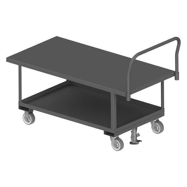 Platform Truck, Load Capacity 2,000 lb, Overall Height 42 1/4 in, Overall Length 63 5/8 in, Overall Width 30 3/8 in, Deck Construction Solid, Deck Material Steel, Deck Finish/Coating Powder Coated, Deck Gauge 12 ga, Deck Height 26 in, Deck Length 60 in, Deck Width 30 in, Deck Surface Smooth, Frame Material Steel, Frame Finish/Coating Powder Coated, Handle Type Removable Raised, Lip Style Combination, Side Panel Type No Side Panels, Number of Platforms 2, Color Gray