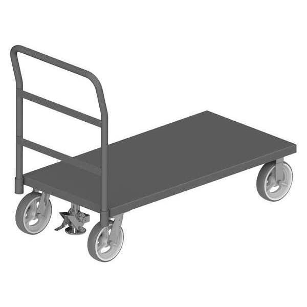 General Purpose Steel-Deck Platform Truck, Load Capacity 2,400 lb, Overall Height 38 1/4 in, Overall Length 51 5/8 in, Overall Width 24 3/8 in, Deck Construction Solid, Deck Material Steel, Deck Finish/Coating Powder Coated, Deck Gauge 12 ga, Deck Height 11 1/8 in, Deck Length 48 in, Deck Width 24 in, Deck Surface Smooth, Frame Material Steel, Frame Finish/Coating Powder Coated, Handle Type Removable Raised, Lip Style Flush, Side Panel Type No Side Panels, Number of Platforms 1, Color Gray