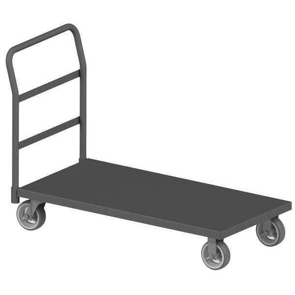 General Purpose Steel-Deck Platform Truck, Load Capacity 2,400 lb, Overall Height 38 1/4 in, Overall Length 63 5/8 in, Overall Width 36 3/8 in, Deck Construction Solid, Deck Material Steel, Deck Finish/Coating Powder Coated, Deck Gauge 12 ga, Deck Height 11 1/8 in, Deck Length 60 in, Deck Width 36 in, Deck Surface Smooth, Frame Material Steel, Frame Finish/Coating Powder Coated, Handle Type Removable Raised, Lip Style Flush, Side Panel Type No Side Panels, Number of Platforms 1, Color Gray