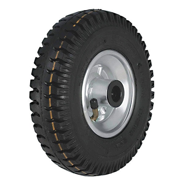 Pneumatic Wheel, 220 lb Load Rating, Ribbed Tread, 8 11/16 in Wheel Dia., 2 9/16 in Wheel Width, For Axle Size 13/16 in, 2.50-4, Standard Tire Rim Type, Center Mount Hub Position, 3 in Hub Length, Steel Hub Material, No Non-Marking