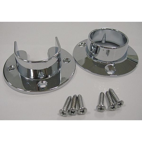 Pole Socket, Type Heavy Duty, Material Zinc, Color Sliver, Chrome-Plated Finish, Size (In.) 2-45/64 in, Length (In.) 2-45/64 in, Width (In.) 2 45/64 in, Height (In.) 7/8 in, Max. Rod Dia. (In.) 1 3/8 in, Hardware Included, Includes (6) 3/4 in Screws, Screw Size 3/4 in, Number of Holes 3, Thickness (In.) 5/64 in