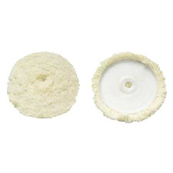 Polishing Pad, Attachment Hook-and-Loop, Color White, Material Wool, Thickness 1 1/2 in, Outside Diameter 7 1/2 in, Compatible Tool Type 6 1/2 in Backing Plate, Application For Polishing