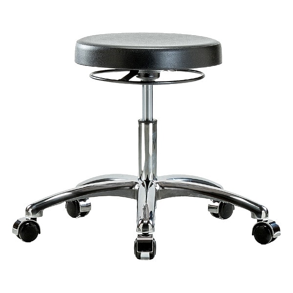 Cleanroom Stool, Weight Capacity 300 lb, Seat Height Range 16 in to 21 in, Seat Depth 13 in, Seat Width 12 1/2 in, Color Black, Material Polyurethane, Base Cast Aluminum, Features 360 Degrees Control, Dual Wheel, Non-Marring Casters, Soil and Puncture Resistant, Includes Not Applicable, No, Standards ANSI/BIFMA, CAL 117