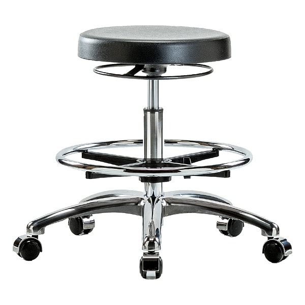 Stool, Weight Capacity 300 lb, Seat Height Range 19 in to 26 3/4 in, Seat Depth 13 in, Seat Width 12 1/2 in, Color Black, Material Polyurethane, Base Cast Aluminum, Features 360 Degrees Control, Dual Wheel, Non-Marring Casters, Soil and Puncture Resistant, Includes Not Applicable, No, Standards ANSI/BIFMA, CAL 117
