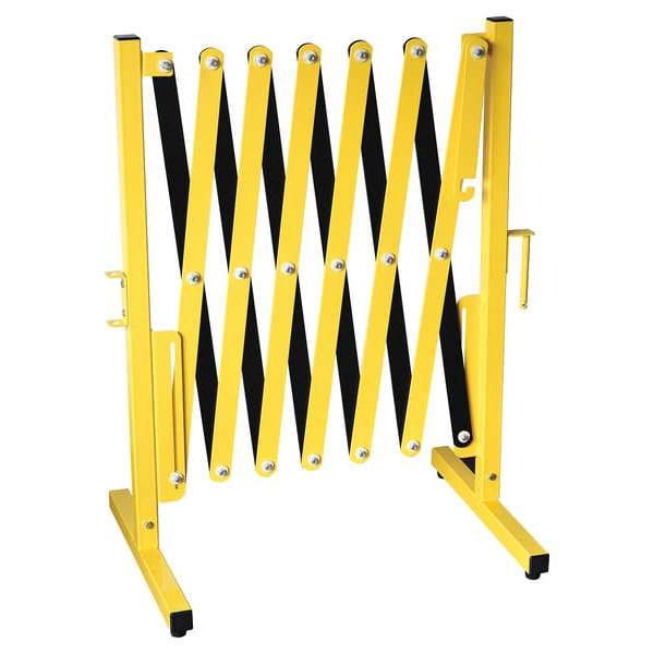 Portable Barricade, Includes Stationary Foot, Overall Height 37 1/2 in, Overall Width 136 in, Legend No Legend, Color Black/Yellow, Material Aluminum, Expanded Length 11 1/3 ft, Retracted Length 15 in, Collapsed Length 15 in, Collapsed Height 37 1/2 in, Collapsed Width 1 1/2 in, Portability Stationary, Extension Option Accordion, Legend Color Black/Yellow, Pattern No Pattern, Finish Powder Coated, Weight 29 lb, ADA Compliance No, Manufacturer Warranty Length 2 yr, Reflectivity Non-Reflective