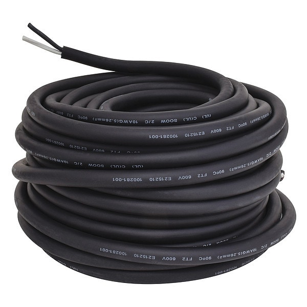 Portable Cord, Number of Conductors 2, Wire Size 10 AWG, Trade Designation SOOW, Jacket Material Rubber, Wire Color Black, White, Jacket Color Black, Length 100 ft, Voltage 600 V, Nominal Outside Dia. 0.62 in