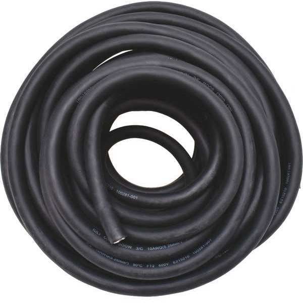 Portable Cord, SOOW, 10 AWG, 3 C, Black, Rubber, Stranded, 600V, Indoor/Outdoor, 50 ft