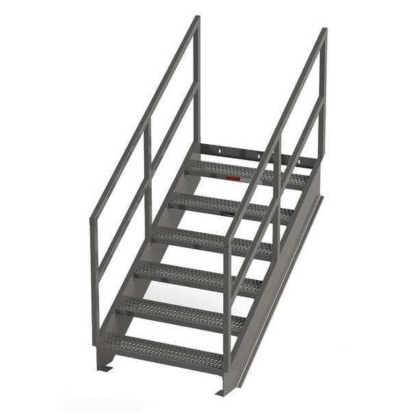 Create strong and reliable access to mezzanines, equipment, and elevated platforms with EGA Industrial Stairways. Features a 500 lbs. capacity, 1.5" square tube handrails, and meets or exceeds OSHA standards. EGA industrial stairways have a 36 degree incline for a relatively small footprint on floor-plans. Industrial Stairway, 6 Steps, 49" Rise, 57" Run, 36"W Serrated Tread
