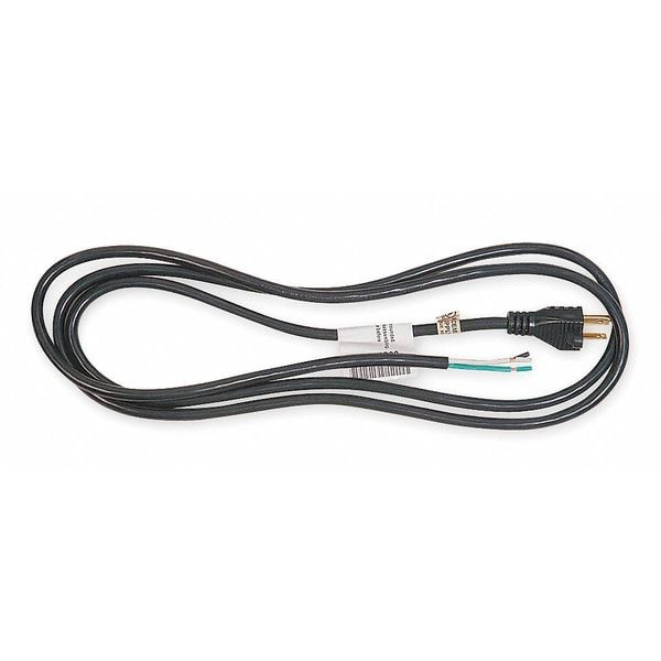 Power Cord, Wire Size 14 AWG, Number of Conductors 3, Jacket Material PVC, Jacket Color Black, Connection Type Bare Leads, Cord Length 8 ft, Voltage 125V AC, Plug Configuration NEMA 5-15P, Max. Amps 15 A, Cord Shape Round, Temp. Rating 32 Degrees to 167 Degrees F, Trade Designation SJT, Nominal Outside Dia. 0.38 in