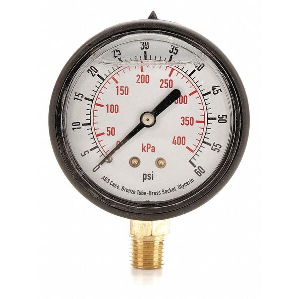 Pressure Gauge, 0 to 60 psi, 1/4 in MNPT, Plastic, Black (Discontinued)