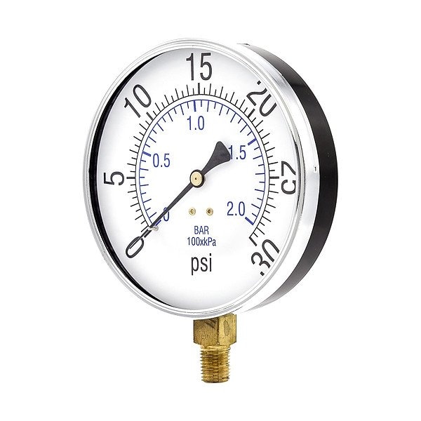 Pressure Gauge, 1/4 in NPT, Bottom Location