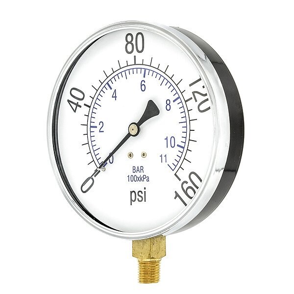 Pressure Gauge, 1/4 in NPT, Bottom Location