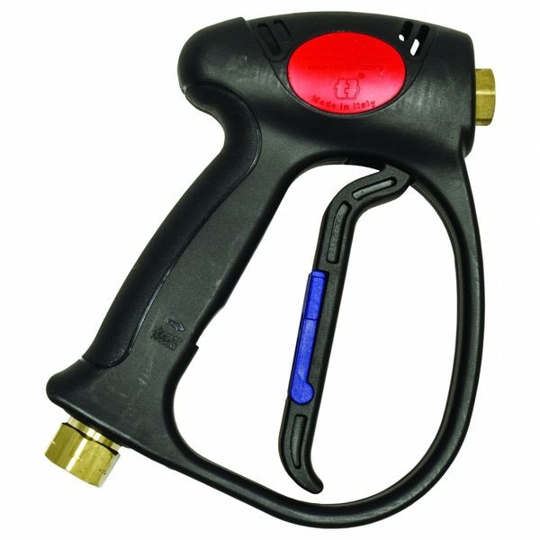 Pressure Washer Spray Gun, Length 6 in, Max. Pressure 4,500 psi, Max. Flow 8 gpm, Inlet 3/8 in FNPT, Outlet 1/4 in FNPT, Max. Fluid Temp. 320 Degrees F, Material Brass, Nitrile Rubber, Plastic, Stainless Steel, Viton(TM), Includes Not Applicable, For Use With Pressure Washers