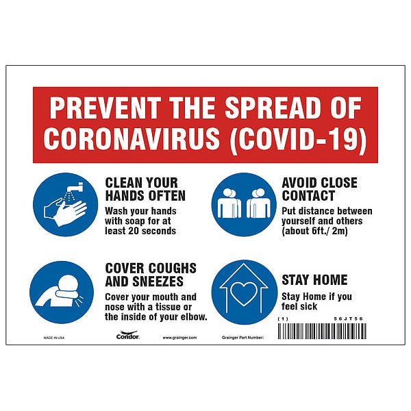 Prevent The Spread Of Coronavirus Sign, Sign Subject Matter Coronavirus Prevention, Height 7 in, Width 10 in, Sign Material Aluminum, Sign Mounting Style With Mounting Holes, Header Prevent The Spread Of Coronavirus (COVID-19)