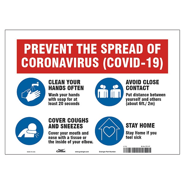 Prevent The Spread Of Coronavirus Sign, Sign Subject Matter Coronavirus Prevention, Height 10 in, Width 14 in, Sign Material Aluminum, Sign Mounting Style With Mounting Holes, Header Prevent The Spread Of Coronavirus (COVID-19)